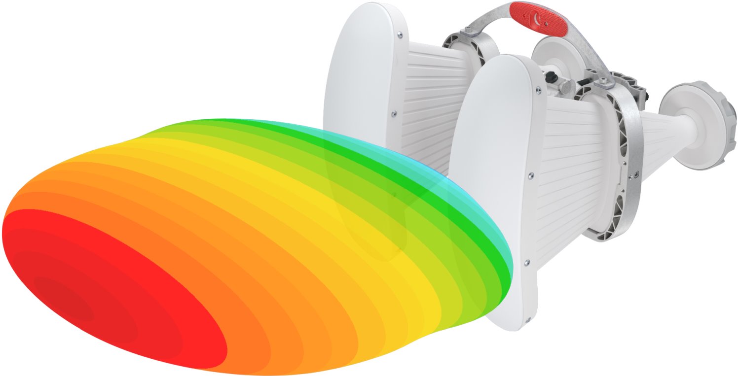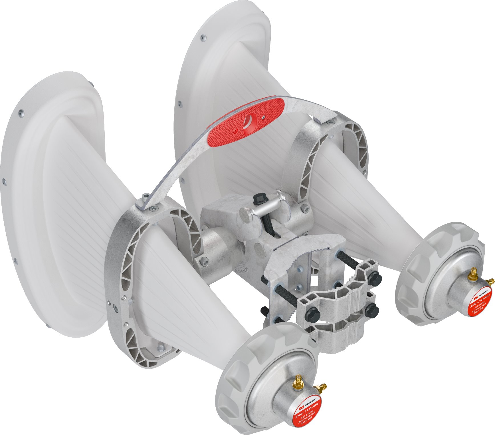 Dvě nezávislé asymetrická WideBand Horn sektorové antény s TwistPortem od RF elements pracují v 5 GHz a 6 GHz frekvenčním pásmu, poskytují zisk 15 dBi a 4 chainy (lze použít pro 2 nezávislá rádia 2x2 MIMO nebo jedno 4x4 MIMO). Díky asymetrickému vyzařovacímu úhlu 90°/25° (H/V) nabízí vynikající pokrytí bez bočních laloků, což zajišťuje lepší odolnost vůči rušení. Antény jsou vybaveny patentovaným konektorem TwistPort™, který umožňuje snadné a rychlé připojení kompatibilních zařízení bez ztrát signálu. Kompaktní design a kvalitní materiály zaručují dlouhou životnost a spolehlivý výkon i v náročných podmínkách. Součástí balení je jsou dva adaptéry s 2x RSMA female konektory pro širší kompatibilitu.