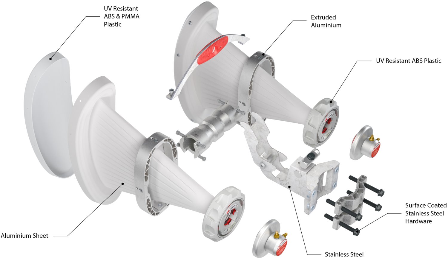 4x4 Asymmetrical Horn WB antény mají inovativní montážní systém s odděleným držákem, což usnadňuje instalaci a nastavení. Stačí upevnit držák na stožár, zasunout anténu a zajistit ji bezpečnostním hákem. Antény jsou o 50 % lehčí než 5GHz verze a jejich kompaktní design šetří místo i náklady na instalaci.
