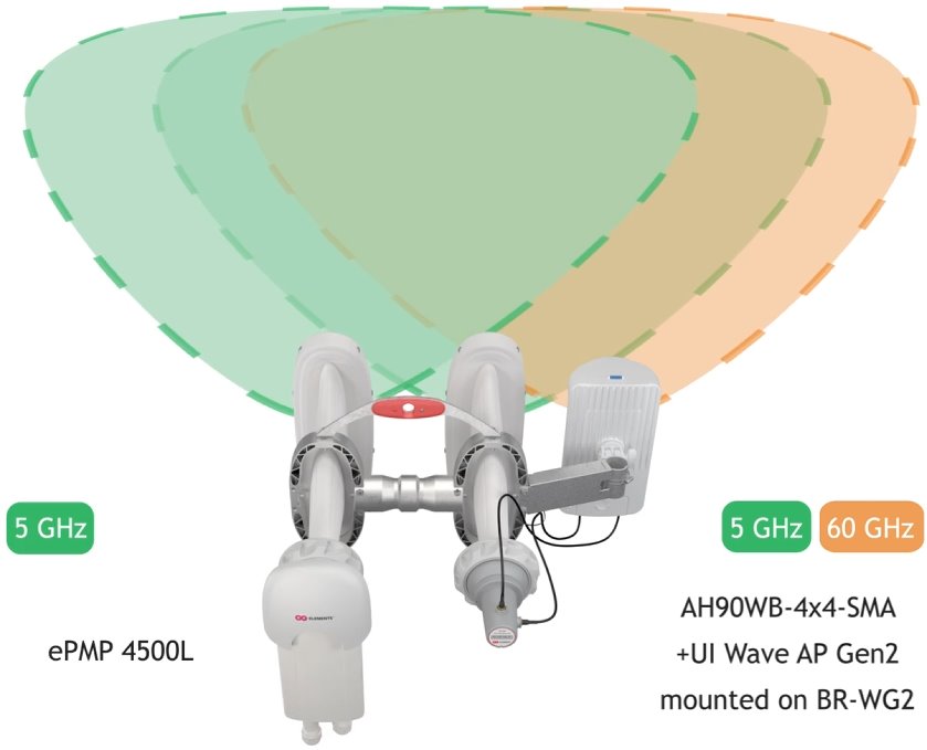 Dvě nezávislé asymetrická WideBand Horn sektorové antény s TwistPortem od RF elements pracují v 5 GHz a 6 GHz frekvenčním pásmu, poskytují zisk 15 dBi a 4 chainy (lze použít pro 2 nezávislá rádia 2x2 MIMO