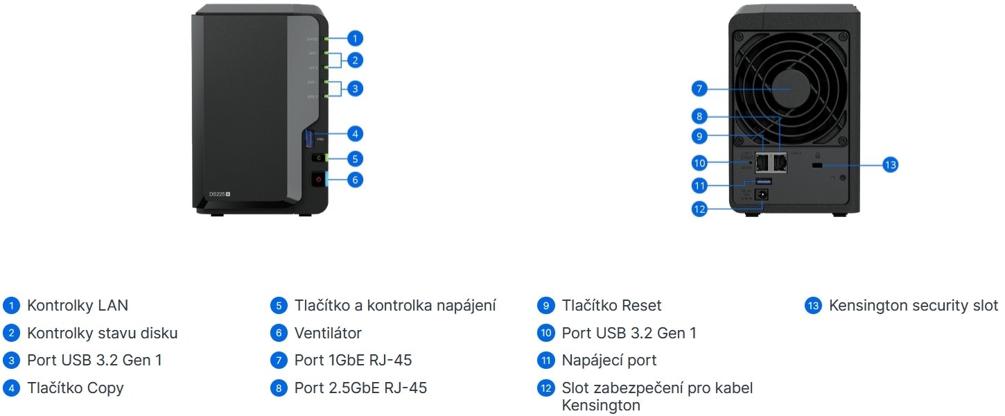 Plynulý provoz zajišťuje výkon až 282 / 217 MB/s sekvenčního čtení/zápisu, který bez problémů zvládá víceuživatelské přístupy, streamování i zálohování. Okamžitou konektivitu poskytuje 2.5GbE port pro vysokorychlostní síť doplněný o další síťové rozhraní s podporou failoveru. Kombinace SSD a HDD disků přináší flexibilitu i optimální poměr mezi kapacitou a výkonem.