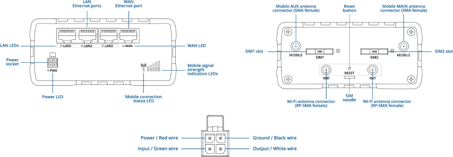 Široké možnosti připojení zahrnují 4× Ethernet (1× WAN, 3× LAN), Wi-Fi 802.11b/g/n a sériová rozhraní RS232 a RS485 pro integraci se stávající infrastrukturou. Nechybí digitální a analogové I/O porty pro monitoring a řízení technologií ani integrovaný GNSS (GPS, GLONASS, BeiDou, Galileo) pro přesnou lokalizaci a synchronizaci času. Procesor Mediatek MIPS 580 MHz a 128 MB RAM zajišťují stabilní provoz, což z tohoto řešení činí spolehlivý základ pro průmyslové sítě, energetiku i dopravu.