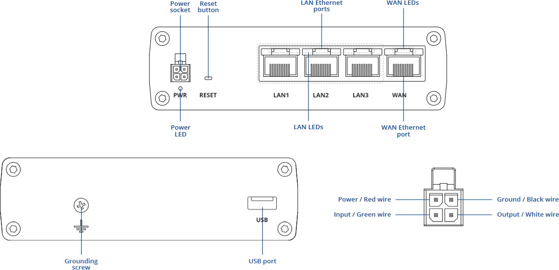 Kabelový adaptér slouží k oddělení napájení a I/O signálů pro zařízení Teltonika. Na jedné straně je vybaven 4-pinovým samičím konektorem, který se připojuje k zařízení, na druhé straně 4-pinovým konektorem a