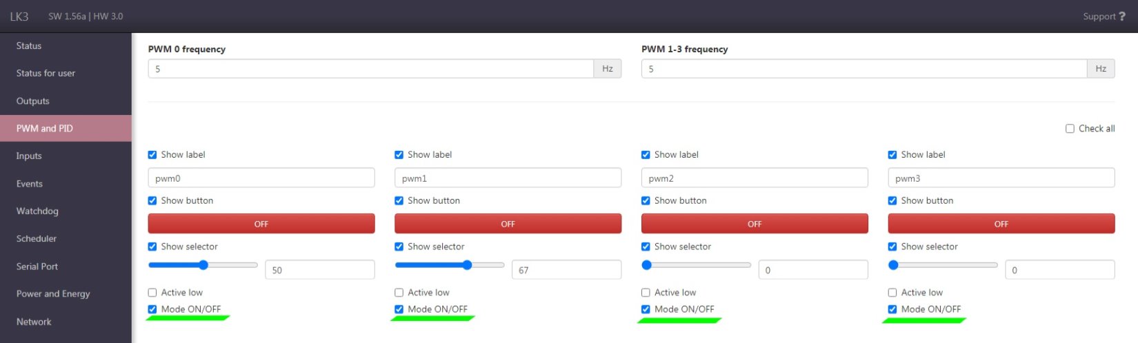 Deska umožňuje snadné přidání dalších 4 reléových výstupů s otevřeným kolektorem řízených přímo z PWM výstupů LAN Controlleru, což zvyšuje flexibilitu a možnosti automatizace. Vyvedené výstupy OUT1–OUT4 spolu s napájením 3,3 V pro čidla a analogovými vstupy INPA1 a INPA2 poskytují pohodlné propojení senzorů a periferií bez složité kabeláže.