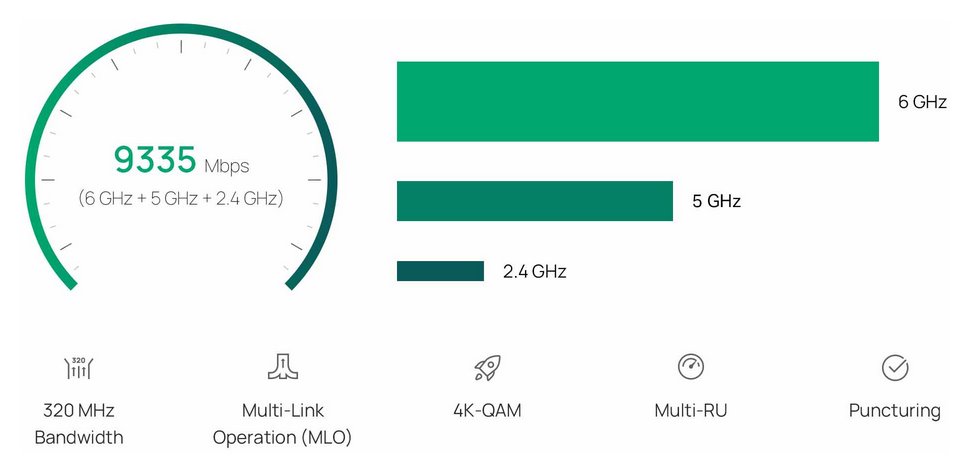 Výkonný přístupový bod přináší revoluci do venkovních sítí díky Tri-Band Six-Stream Wi-Fi 7, která poskytuje až 688 Mb/s (2.4GHz), 2882 Mb/s (5GHz), 5765 Mb/s (6GHz). Díky 6 GHz pásmu odemčenému pomocí AFC je možné využití nejmodernějšího spektra i venku, což zajišťuje vysokou rychlost a spolehlivé připojení pro různé komerční i rezidenční prostory.