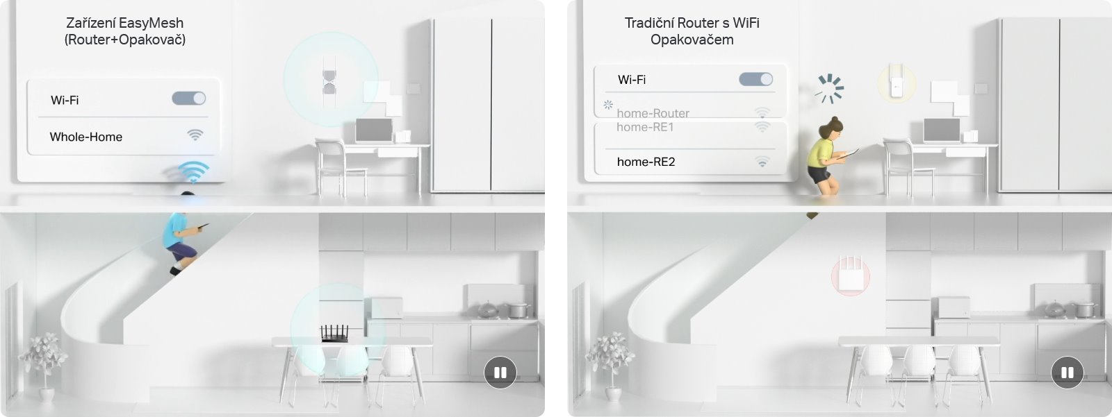 Chytrý roaming umožňuje plynulý přechod mezi místnostmi bez ztráty signálu, takže vaše připojení zůstává stabilní a rychlé. Díky kompatibilitě s EasyMesh lze vytvořit jednotnou celoplošnou Mesh Wi-Fi síť, která eliminuje mrtvé zóny a minimalizuje výpadky při přechodu mezi signály. Užijte si stabilní připojení v každé místnosti a plynulé používání více zařízení současně.