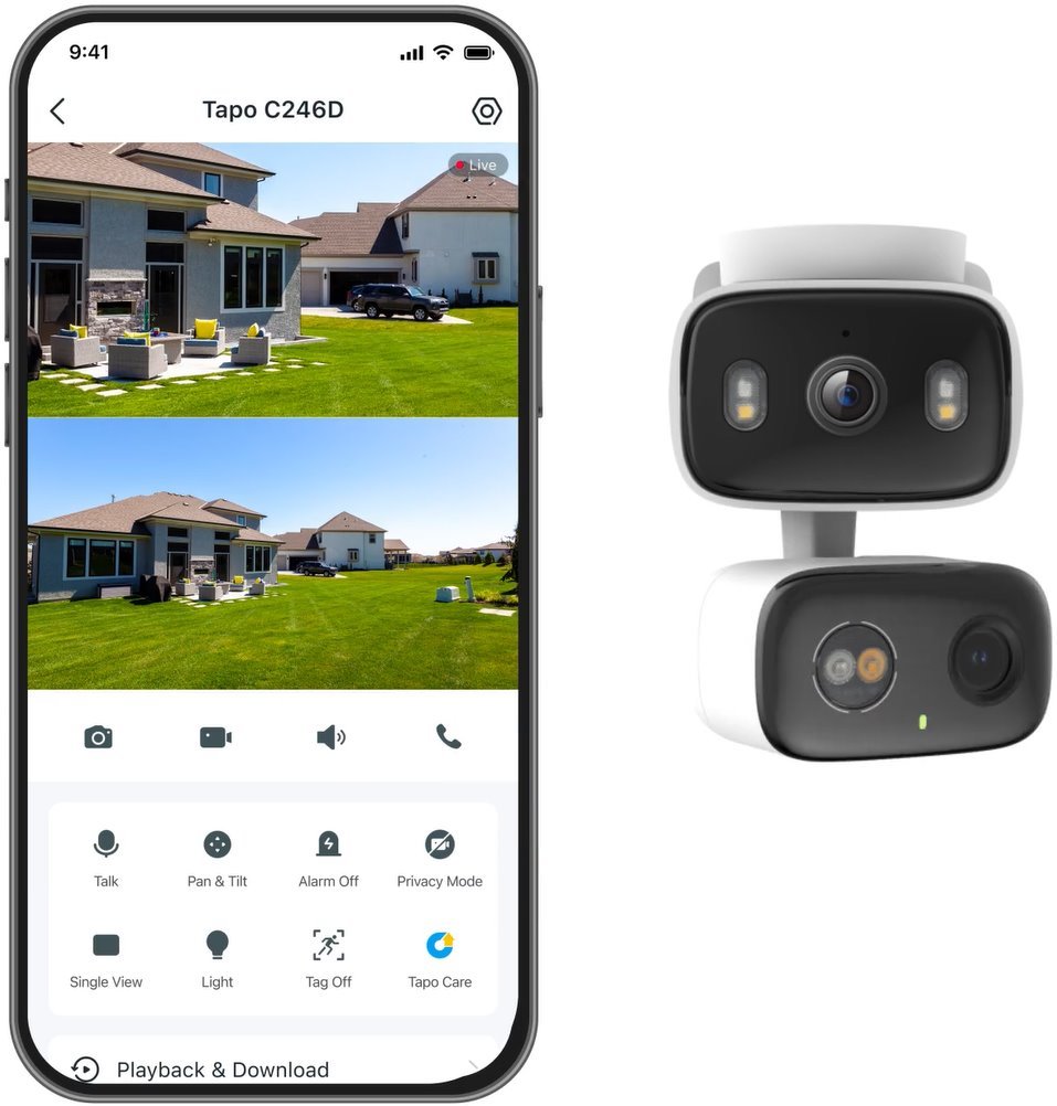 TP-Link Tapo C246D Bezpečnostní otočná kamera s naklápěním a dvěma objektivy, 3Mpx