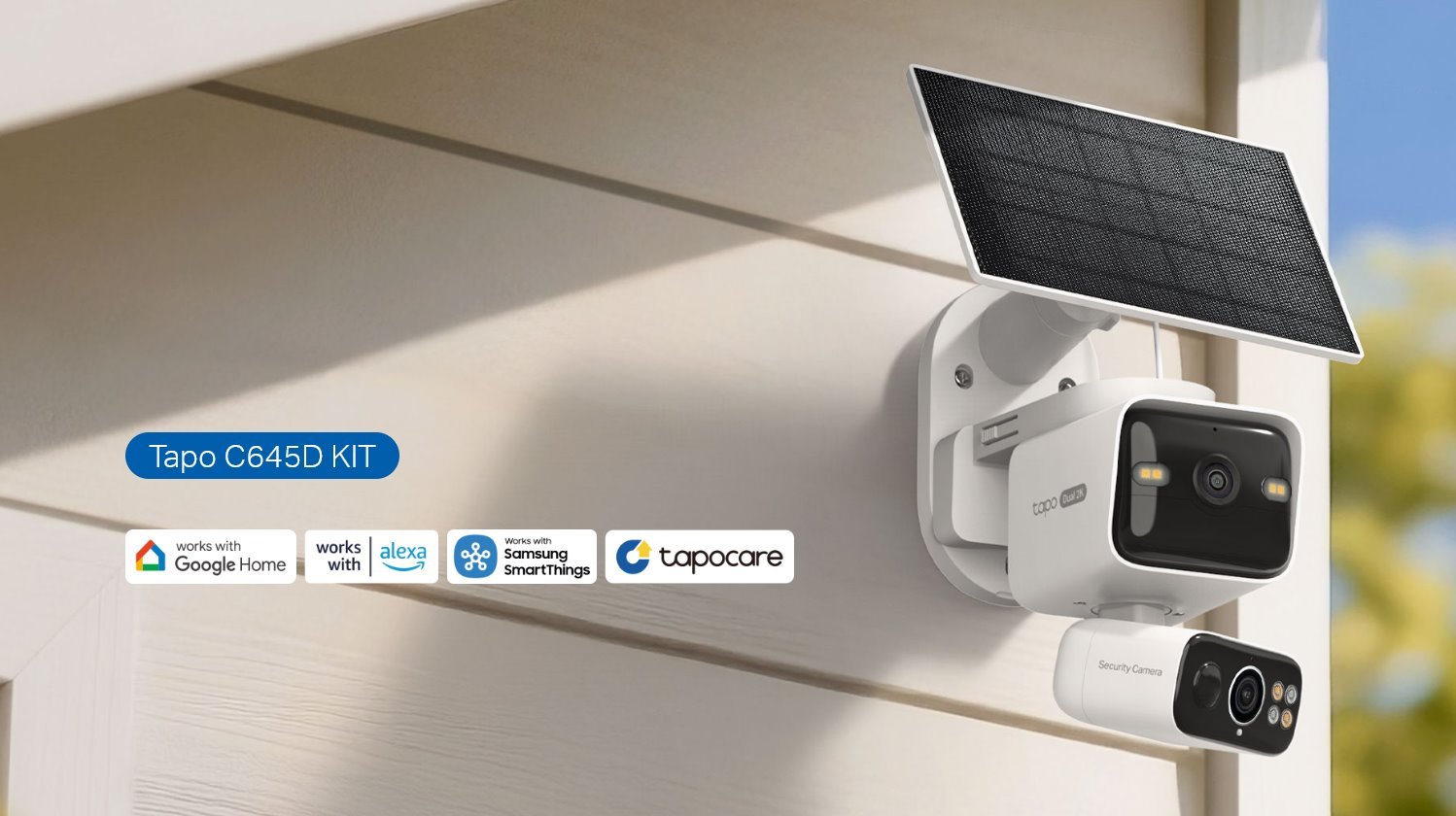 TP-Link Tapo C645D KIT Bezpečnostní otočná kamera s naklápěním a dvěma objektivy + solární panel, 3Mpx