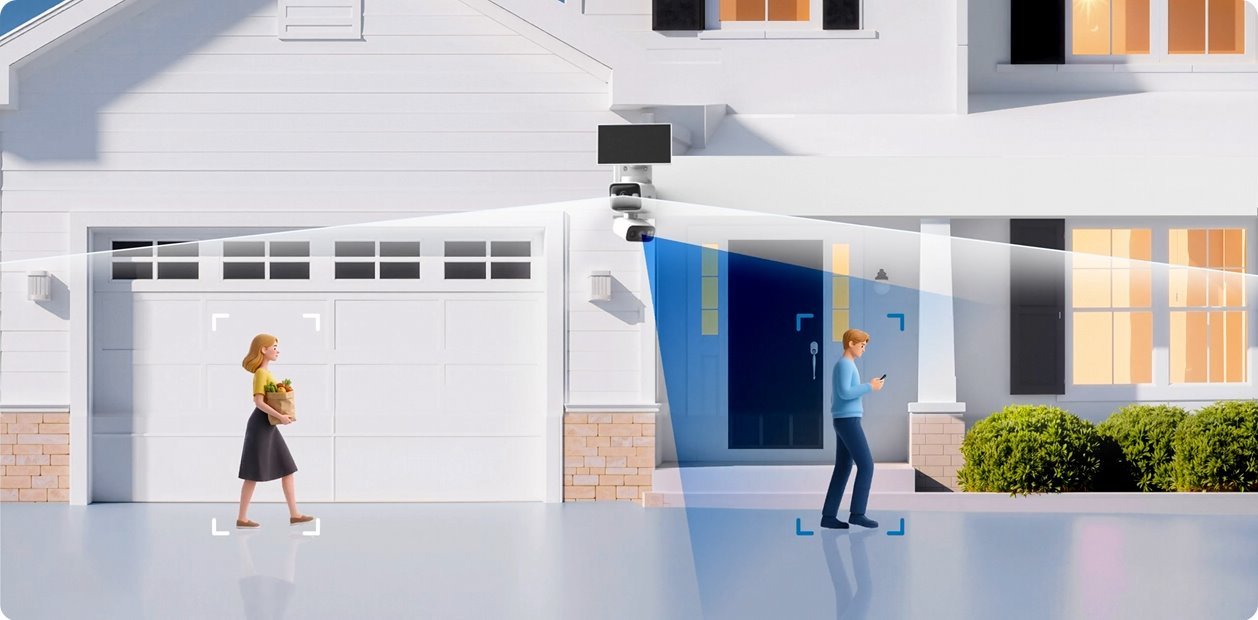 Díky synchronizovanému chytrému sledování spolu obě kamery úzce spolupracují. Jakmile širokoúhlý objektiv zaznamená pohyb osoby, vozidla nebo zvířete, otočný objektiv se automaticky zaměří na cíl a sleduje ho v reálném čase. Jedním klepnutím v aplikaci lze navíc aktivovat chytré ostření, které okamžitě přiblíží a vycentruje obraz na vybraný detail.