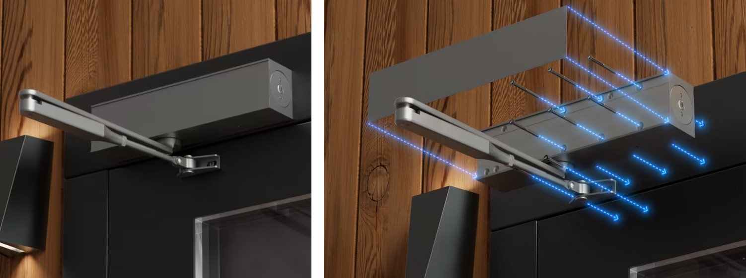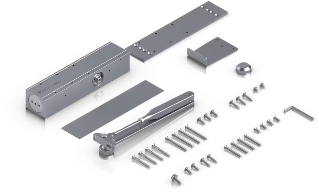Mechanický zavírač dveří zajišťuje kontrolované zavírání pro maximální bezpečnost a pohodlí. Díky možnosti nastavení síly zavírání (EN 2–6) a regulovatelné rychlosti zavírání a zajištění poskytuje vysokou flexibilitu pro různé typy dveří. Instalace je jednoduchá bez použití rukou. Vyrobeno z kvalitního hliníku a oceli, s hmotností 3300 g a kompaktními rozměry (48 mm hloubka, 257 mm šířka, 60 mm výška).