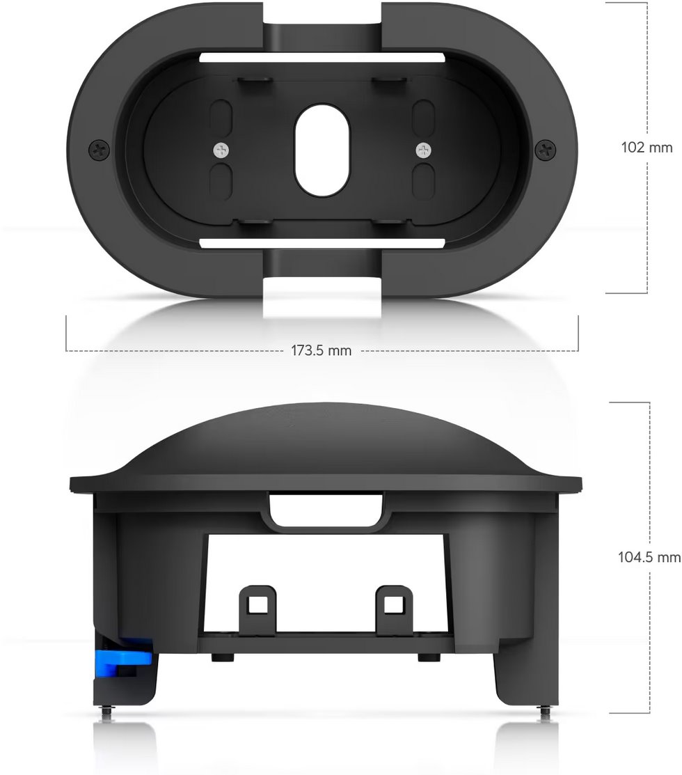 Držák umožňuje diskrétní zapuštění kamery G6 180 do sádrokartonových či kazetových podhledů, čímž vytváří čistý a profesionální vzhled interiéru. Vyroben z odolného polykarbonátu, zajišťuje dlouhou životnost a mechanickou pevnost. Kompaktní rozměry (174 × 105 × 102 mm) a elegantní černá barva podtrhují nenápadnost a estetickou integraci do prostoru, zatímco specifická kompatibilita s kamerou UVC-G6-180 garantuje jednoduchou a bezpečnou instalaci bez kompromisů na funkčnosti.