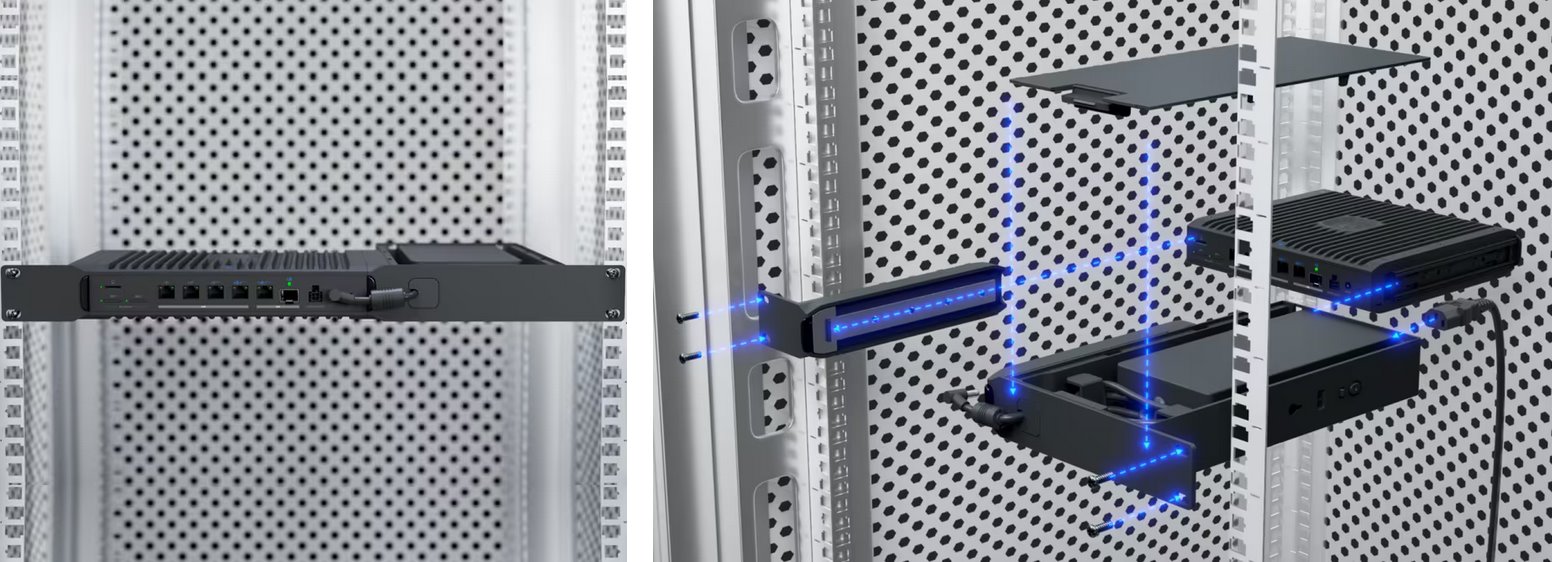 Elegantní instalaci síťové infrastruktury zajistí rackový držák pro Cloud Gateway Industrial, který umožňuje bezpečné umístění zařízení do standardního 19" rozvaděče. Konstrukce z kombinace polykarbonátu a oceli poskytuje vysokou odolnost i při dlouhodobém provozu. Díky kompaktnímu provedení zabírá pouze 1U pozici v racku, což usnadňuje organizaci technologií v rozvaděči.