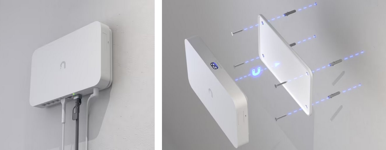 Velice elegantní a praktický magneticý držák určený pro jednoduché přichycení UCG-Fiber a UXG-Fiber od Ubiquiti Networks na zeď pomocí 2 šroubků, které jsou součástí balení. Celkové rozměry držáku jsou 206 x 121 x 8 mm a je vyroben z polykarbonátu a silikonové gumy.