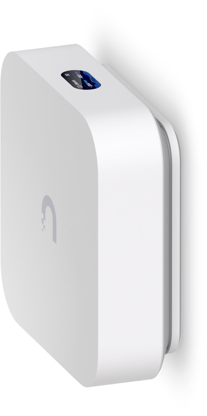 Výkonné a kompaktní zařízení UniFi Network Gateway obsahuje všechny funkce v jednom – brány, firewallu a přístupového bodu Wi-Fi 6 . Vestavěná Wi-Fi podporuje standard 802.11ax s přenosovými rychlostmi 2402