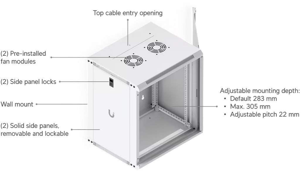 Ubiquiti UACC-Rack-12U-Wall-450-G, Nástěnný datový rozvaděč 19" 12U/450mm, skleněné dveře