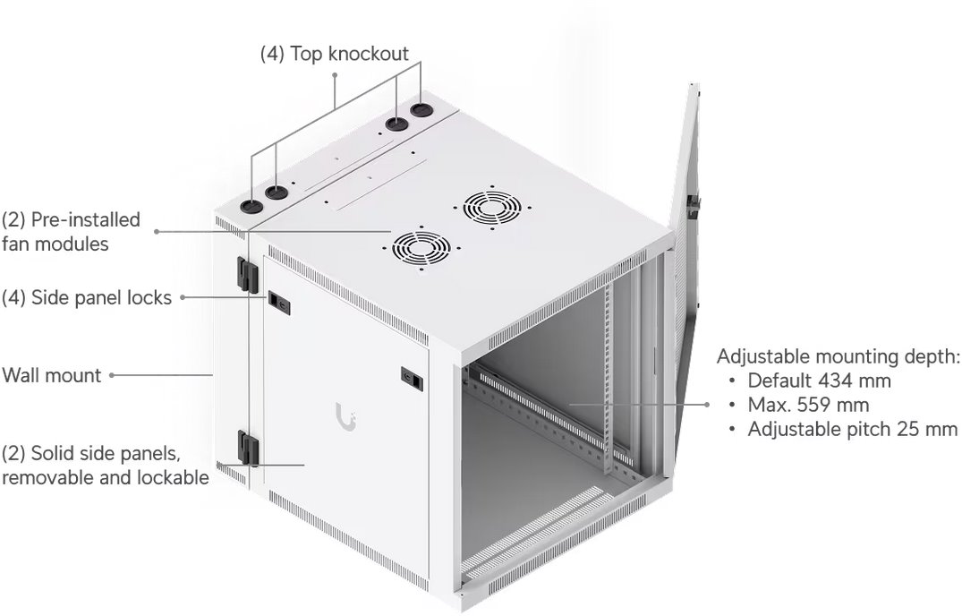 Ubiquiti UACC-Rack-12U-Wall-SW-P, Dvoudílný datový nástěnný rozvaděč 19" 12U/703mm, perforované dveře