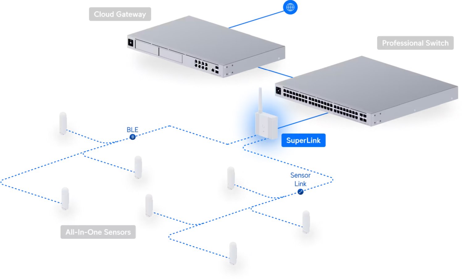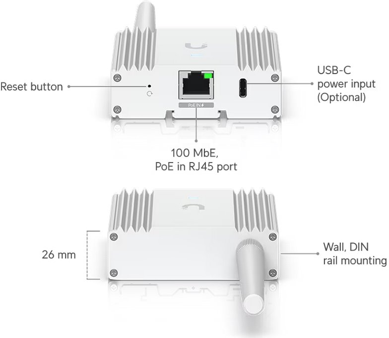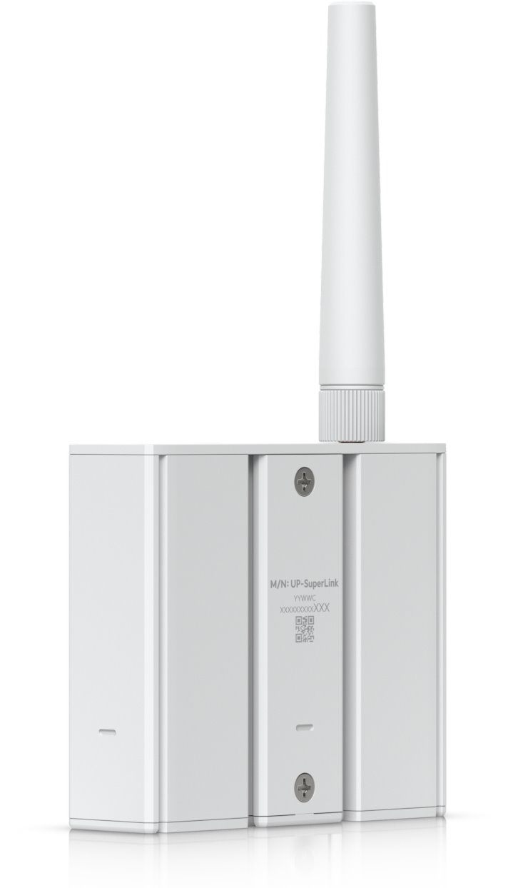 Bezdrátová brána s velmi dlouhým dosahem a nízkou latencí, navržena pro UniFi Protect senzory (například UP-Sense). Podporuje až 96 SuperLink klientů s dosahem až 2 km (v přímé viditelnosti). Zařízení lze napájet pomocí PoE nebo USB Type-C. Nabízí možnosti montáže na zeď nebo na DIN lištu. SuperLink senzory budou brzy k dispozici, s rozsahem pokrytí porovnatelným s Wi-Fi.