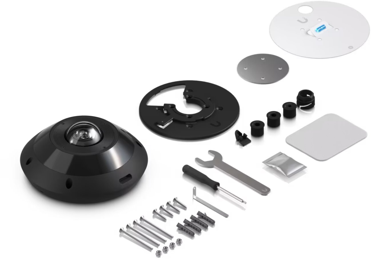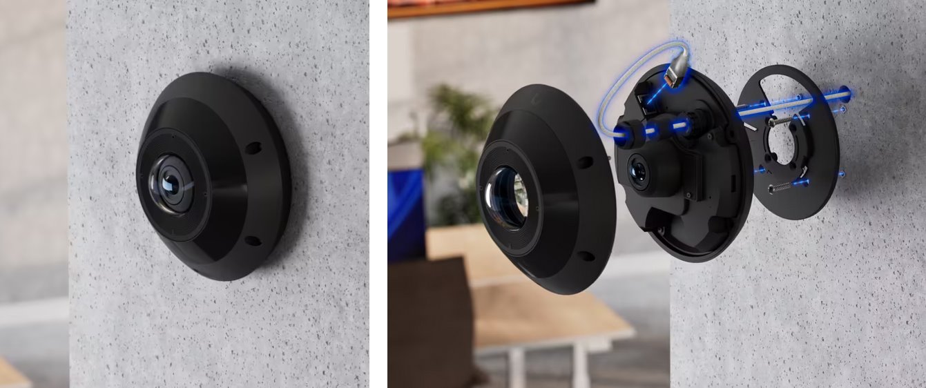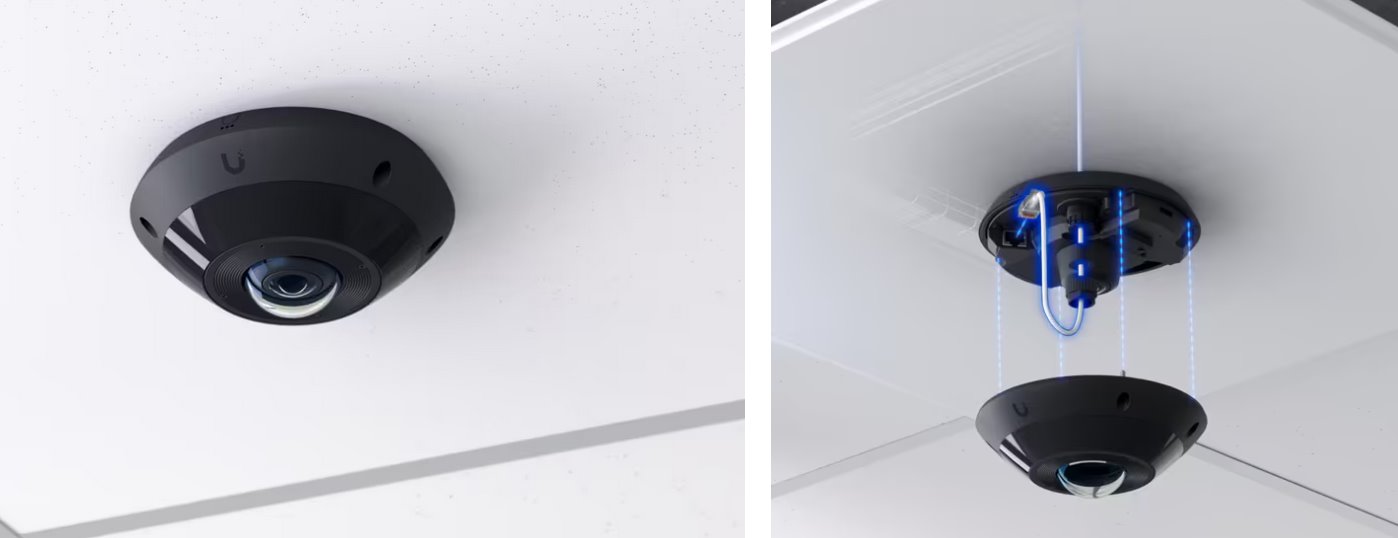 Elegantní zapuštěný držák umožňuje nenápadnou instalaci bezpečnostní kamery UVC-G6-Pro-360 přímo do stropu nebo stěny, čímž se výrazně zvyšuje estetická integrace kamery do moderních interiérů. Kamera se